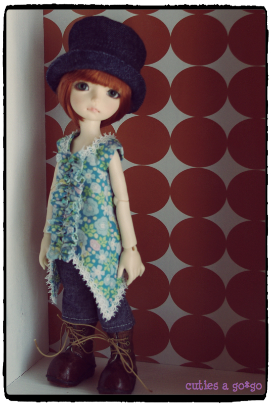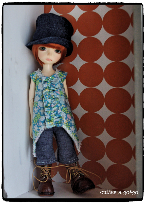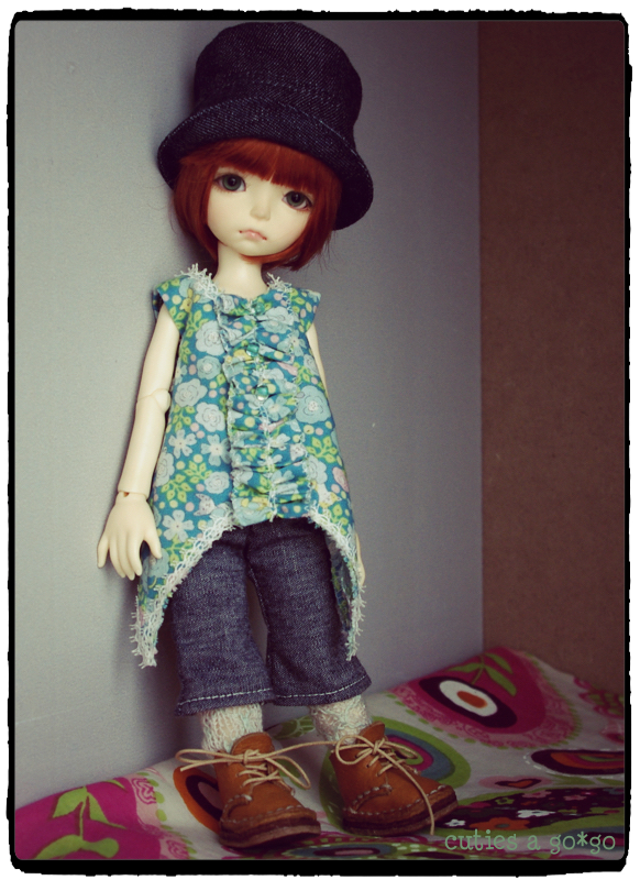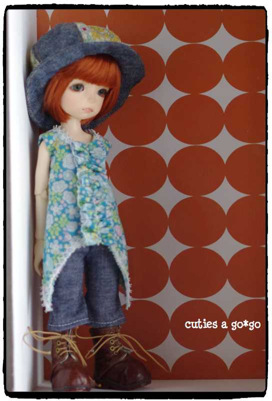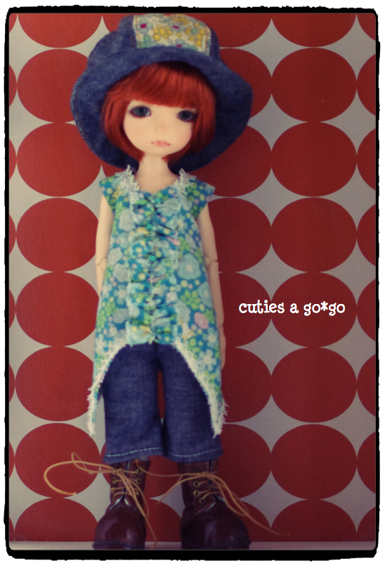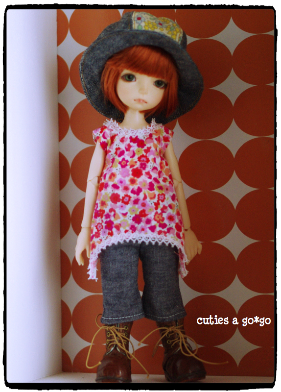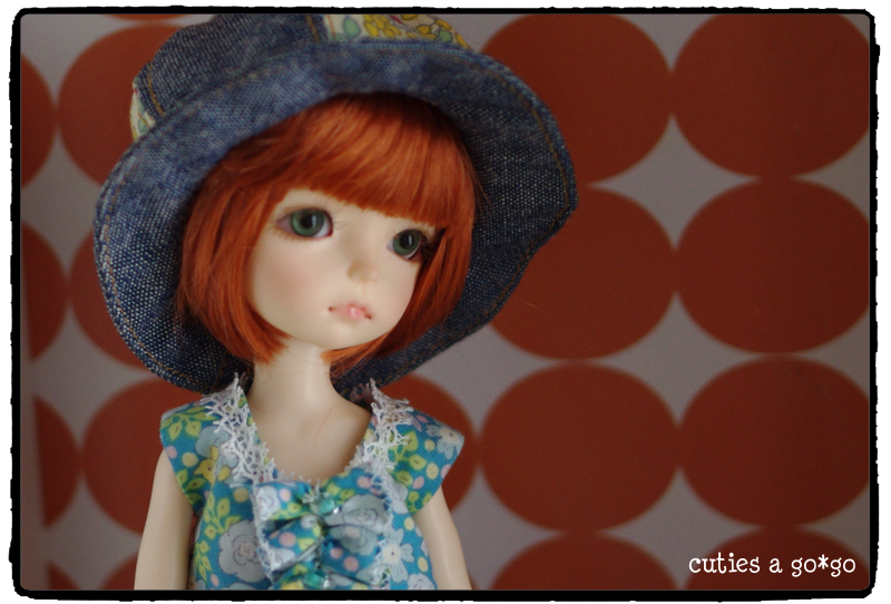 で、以前Liti 黄色子に作ってあげてた帽子をかぶらせてみたらば、これまたジャストサイズ。これで帽子の型紙を一から作らなくてすむ!(でも、現在型紙をどのファイルに入れたか忘れてたりするんですけどね・・・)