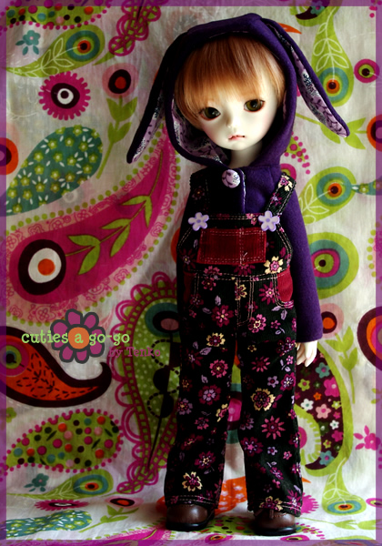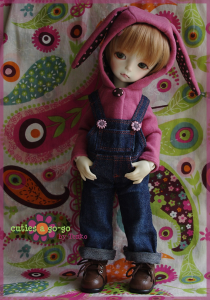 うさ耳パーカー、オーバーオールと合わせるとこんな感じ♪