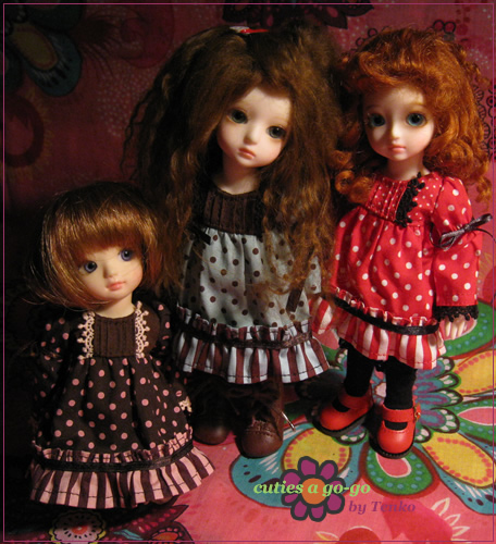 去年作った水玉ワンピをそれぞれに着せて、初の3ショットを撮ってみました。